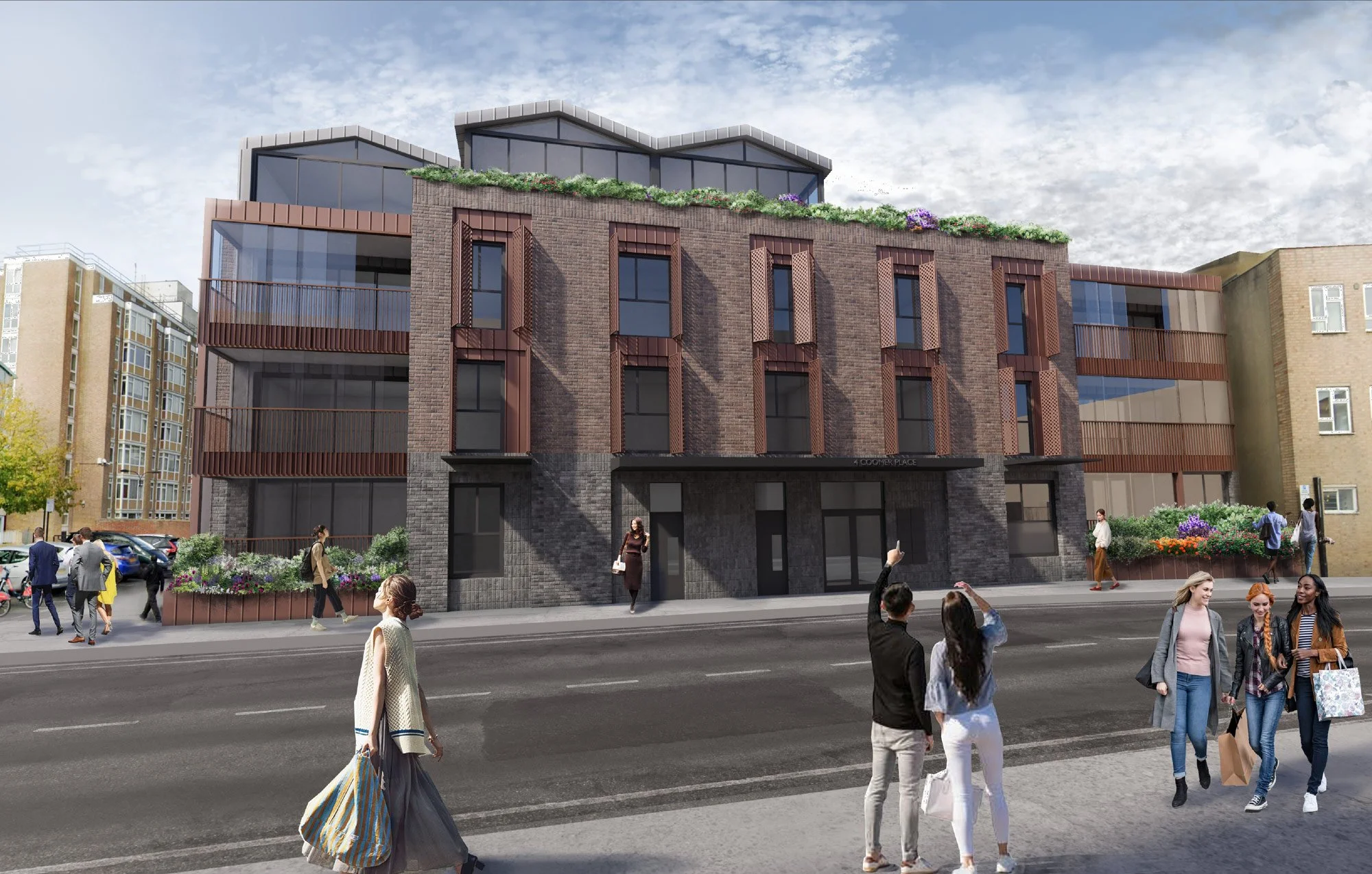 The external materials, facing bricks and zinc cladding together with a system of foldable perforated solar shading panels will animate the street scene. The solar panels although animating the street scene are a integral part of controlling the thermal performance of the building. All apartments will have private amenity space in the form of a winter garden/balcony. These indoor-outdoor spaces to the façade will provide year round amenity. The ground floor level is set to be raised up from the street level in order to give the occupants privacy, separated by planters providing a green buffer zone at the back of the public foot path.
